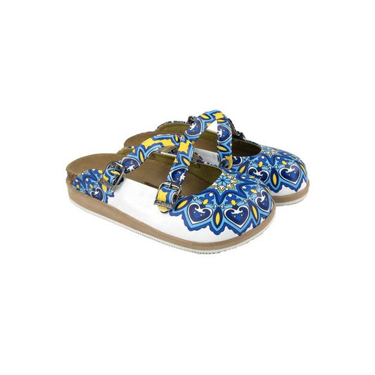 Blue Floral Cross-Strap Clogs WCAL129